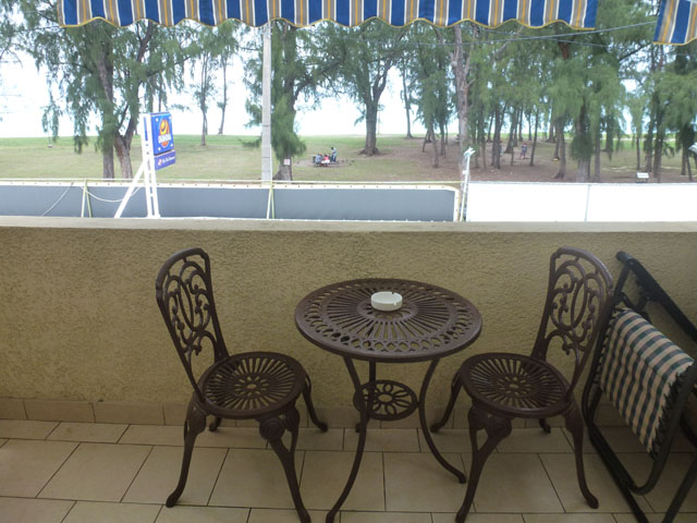 L'ultima foto è fatto di mattina prima della partenza: cielo blu. Io prendo il bus per Mahébourg, sue est dell'isola.