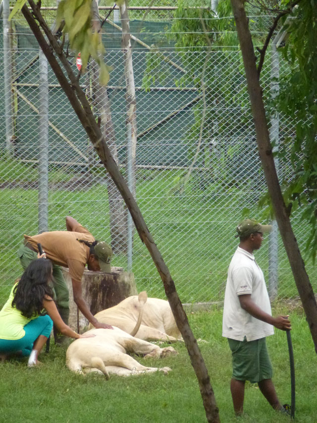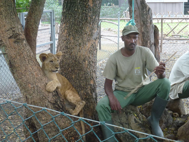 nella foto seguente vedete una signora, ospite del parco come me, che però ha pagato per l'interazione con i leoni e li poteva toccare. Avevo intensione di farlo anch'io ma con la fase di sfortuna nella quale mi trovo ho pensato che è meglio evitare.